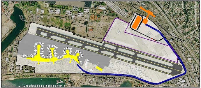This is only stage 1 of several stages planned between now and 2035 for the San Diego Airport. Ultimately the plan is to have all airport passengers arrive and depart at the North Side of the airport. Passengers in the future will connect to the terminals with a People Mover which will go under the runway. As part of this airport overhaul the terminals will be rebuilt and expanded to the maximum number of gates possible for this airport to serve future growth.